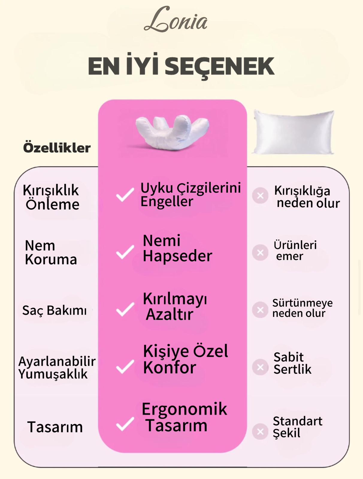 Yüz Yastığı yüzünüzü nazikçe sarar, bu sorunları önler ve pürüzsüz, genç bir cilt görünümünü destekler